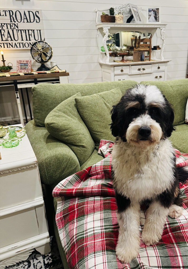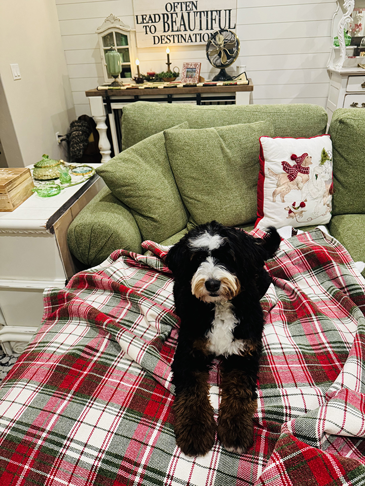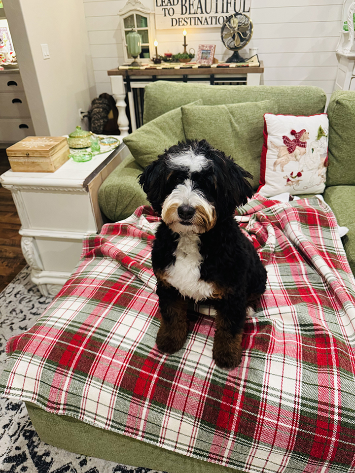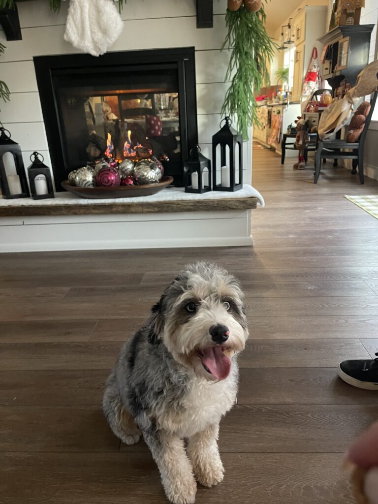 Stella is a beautiful mini tri Merle Bernedoodle! She is as sweet and full of fun as they come! She has had her first litter, and they are gorgeous!